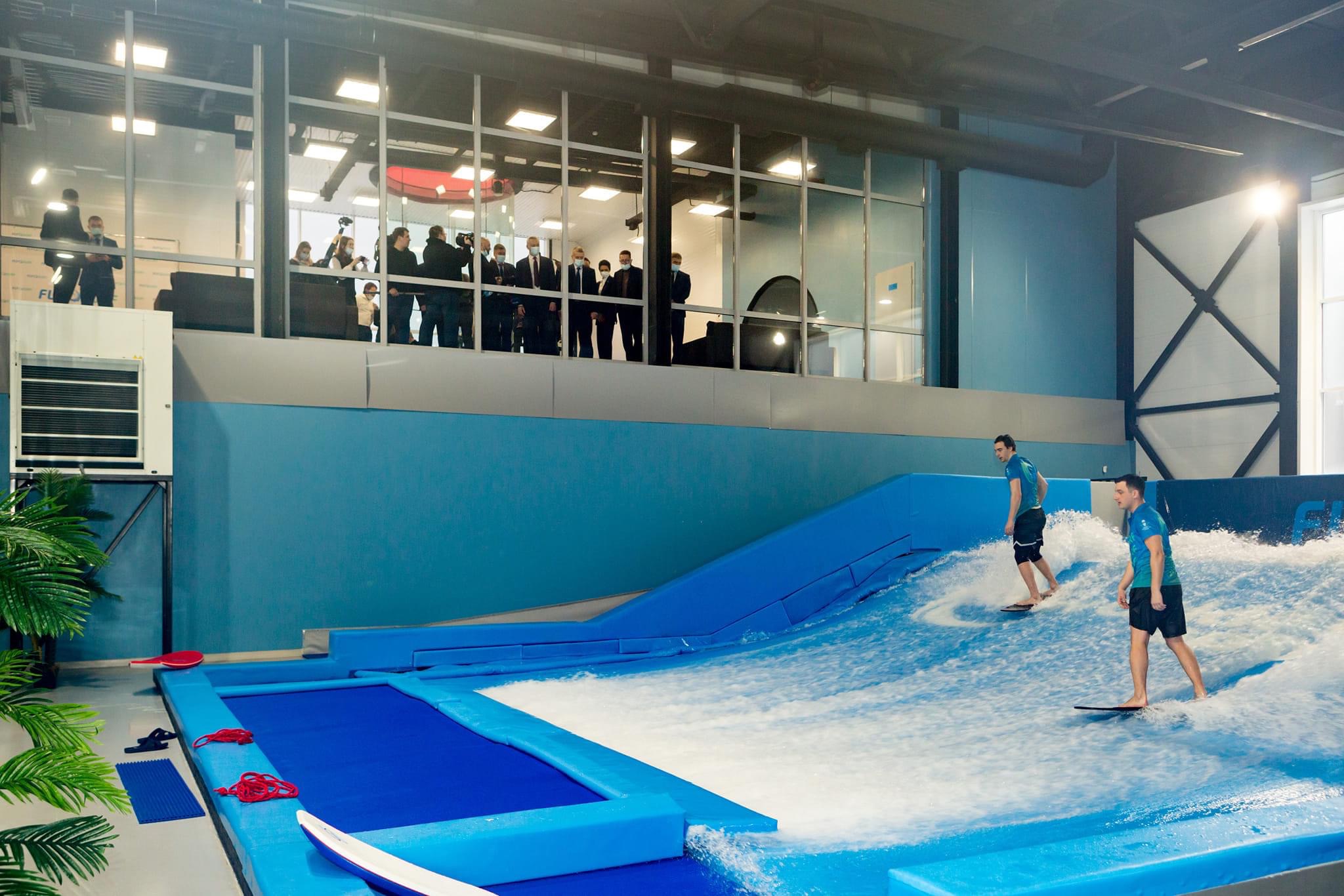 Команда спортсменов «FLYSURF» подготовила демонстративные выступления в аэротрубе и на искусственной волне для серфинга Worldex Sport.