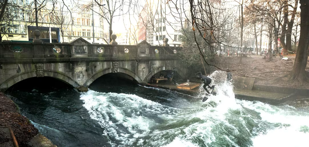 В нормальных условиях Айсбах - узкое, быстро движущееся ответвление реки Исар - производит непрерывную статическую волну, которая привлекает серферов (и туристов) со всего мира.