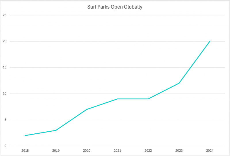 Рынок серф-парков переживает бум. В 2024 году по всему миру открылось девять серф-парков, что почти вдвое превысило число действующих в настоящее время. Хотя пандемия на несколько лет замедлила развитие этой отрасли, нет сомнений в том, куда она двинется в ближайшие десятилетия.