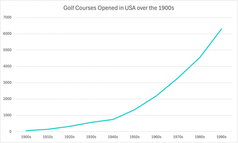 Таблица 2: Динамика открытия гольф полей в США с1900 года.